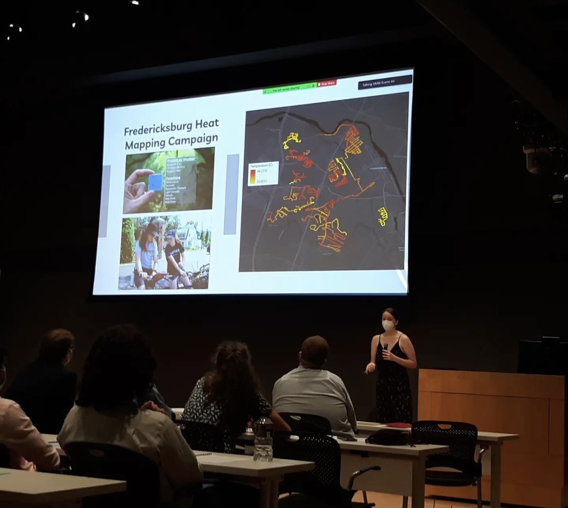 Ava, who won the “Best Presentation” award, collaborated with Assistant Professor of Environmental Science Pamela Grothe ’06 and a team of volunteers to map temperatures across Fredericksburg.