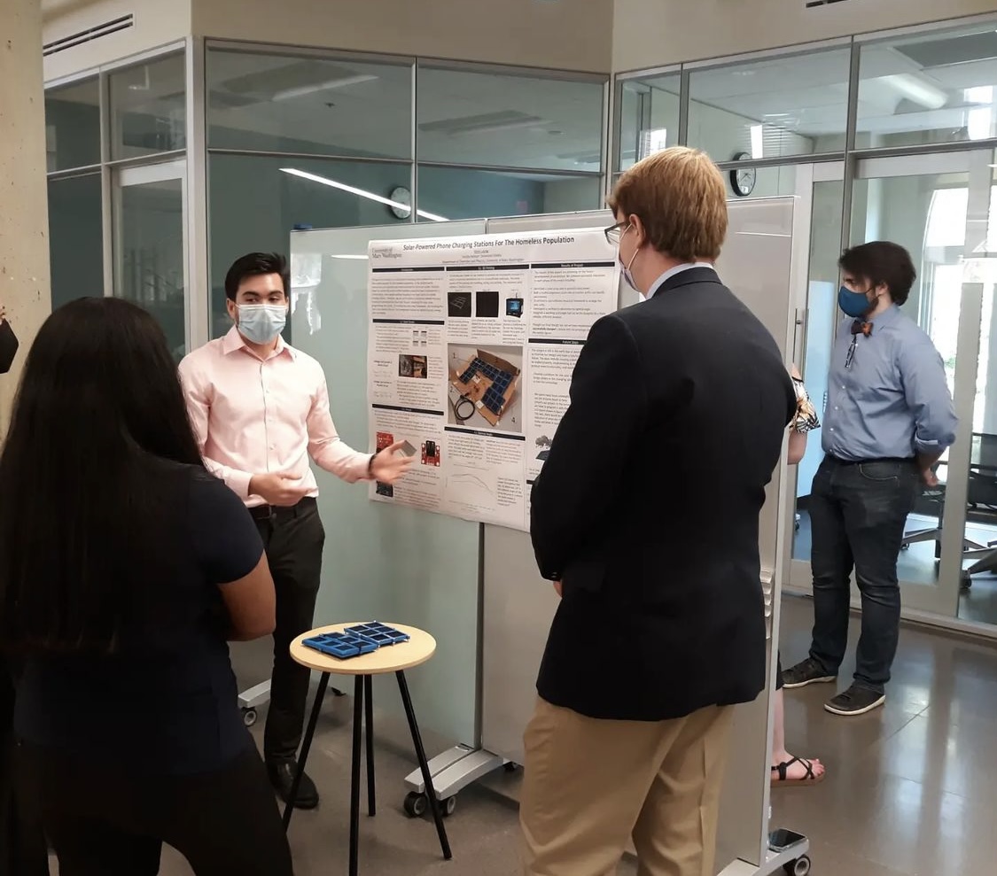 Kevin, a rising senior, received the “Best Poster” award for his creation of a solar-powered cell phone charging station for homeless people. Working with Assistant Professor of Physics Desmond Villalba, he used a 3-D printer, and created and programmed circuits, to assemble a functioning prototype he hopes can be replicated in Fredericksburg.