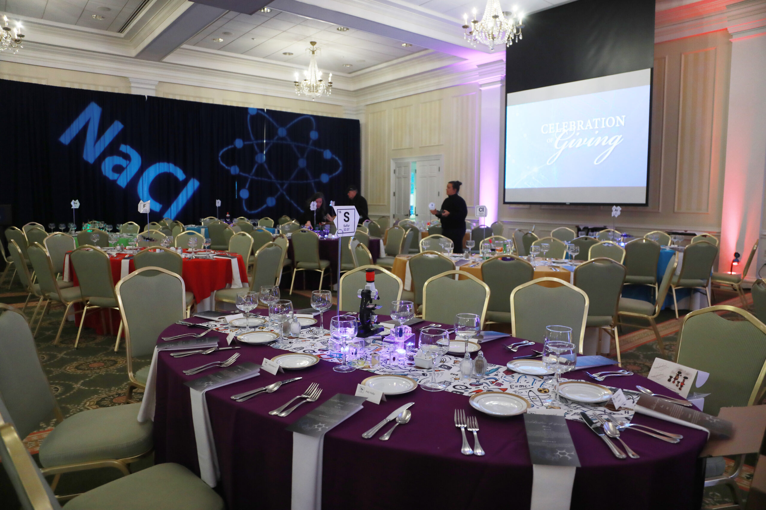 With science as the theme of the evening, tables were adorned with beakers, flasks, and other laboratory tools. Photo by Karen Pearlman Photography.