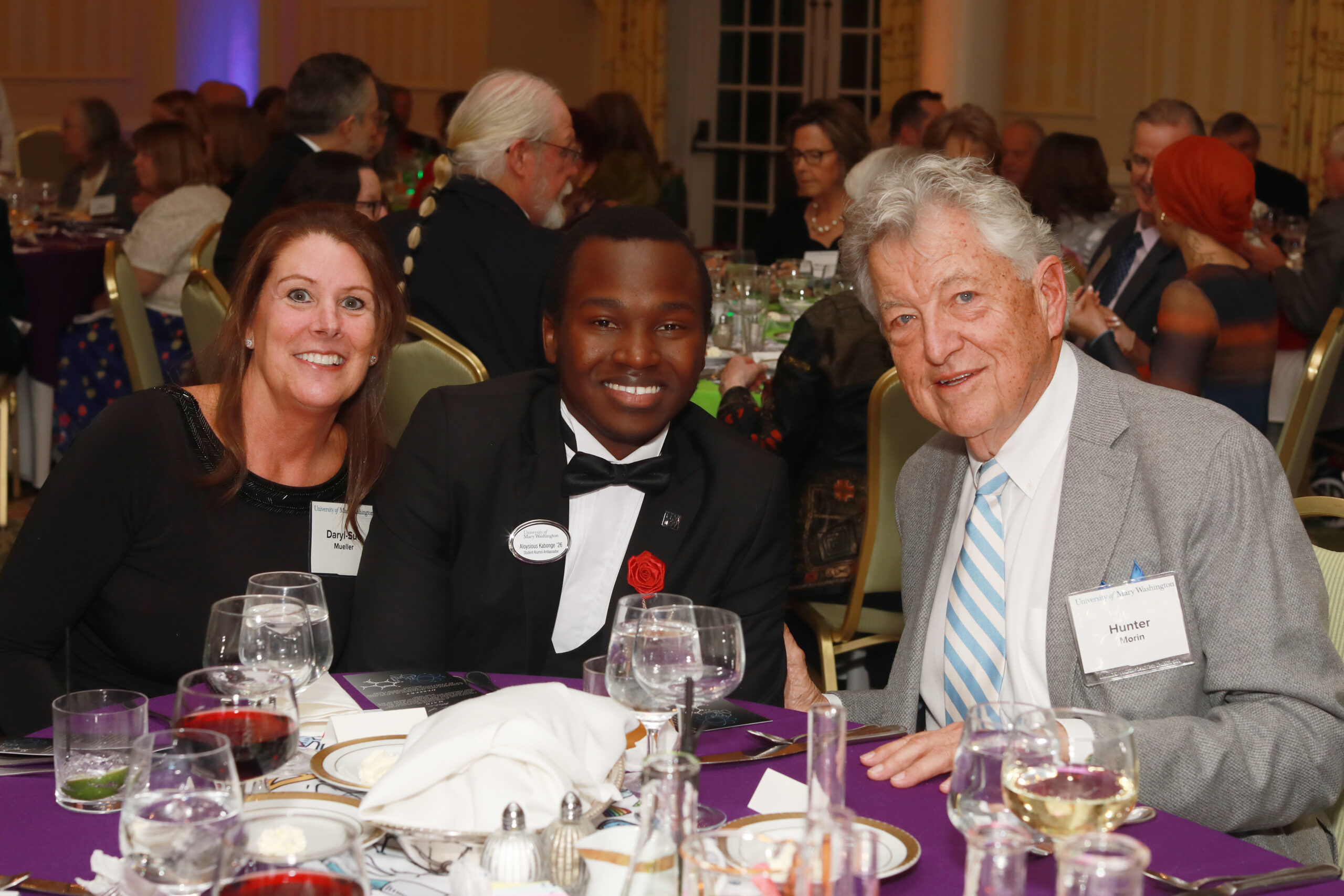 From left: Daryl-Sue Mueller, UMW sophomore Aloysius Kabonge, and Hunter Morin at the Celebration of Giving. Photo by Karen Pearlman Photography.