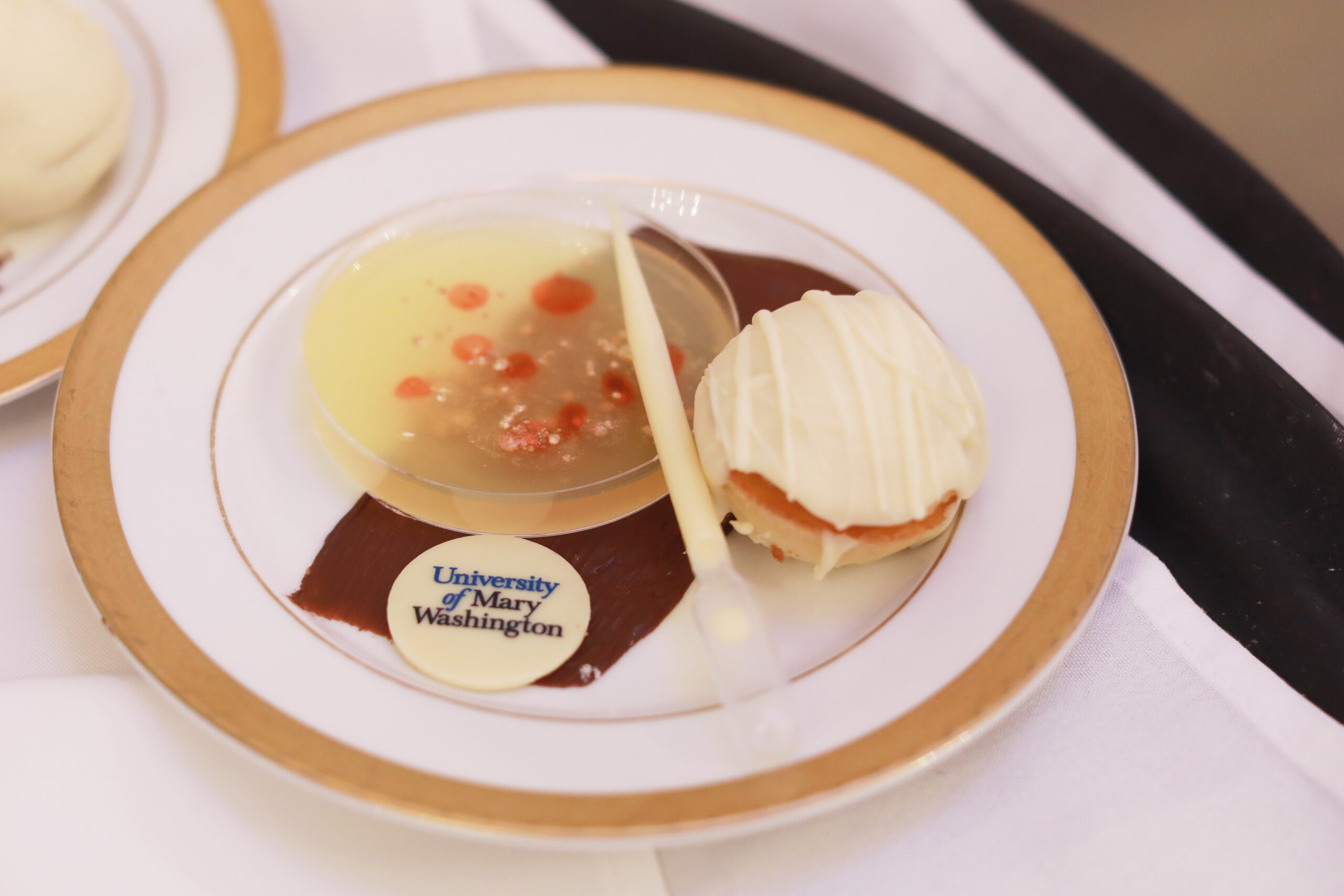 Seated at tables adorned with microscopes, drones, and beakers and flasks filled with colorful liquids, guests embraced the evening’s science theme, especially a chemistry concoction for dessert created by UMW Catering. Showcasing a broad liberal arts and sciences education, junior Sasha Murphy, a biochemistry major and neuroscience minor, played flute, accompanied by Department of Music Professor and Chair Brooks Kuykendall on piano. Attendees then listened as a series of speakers thanked donors for their contributions.
