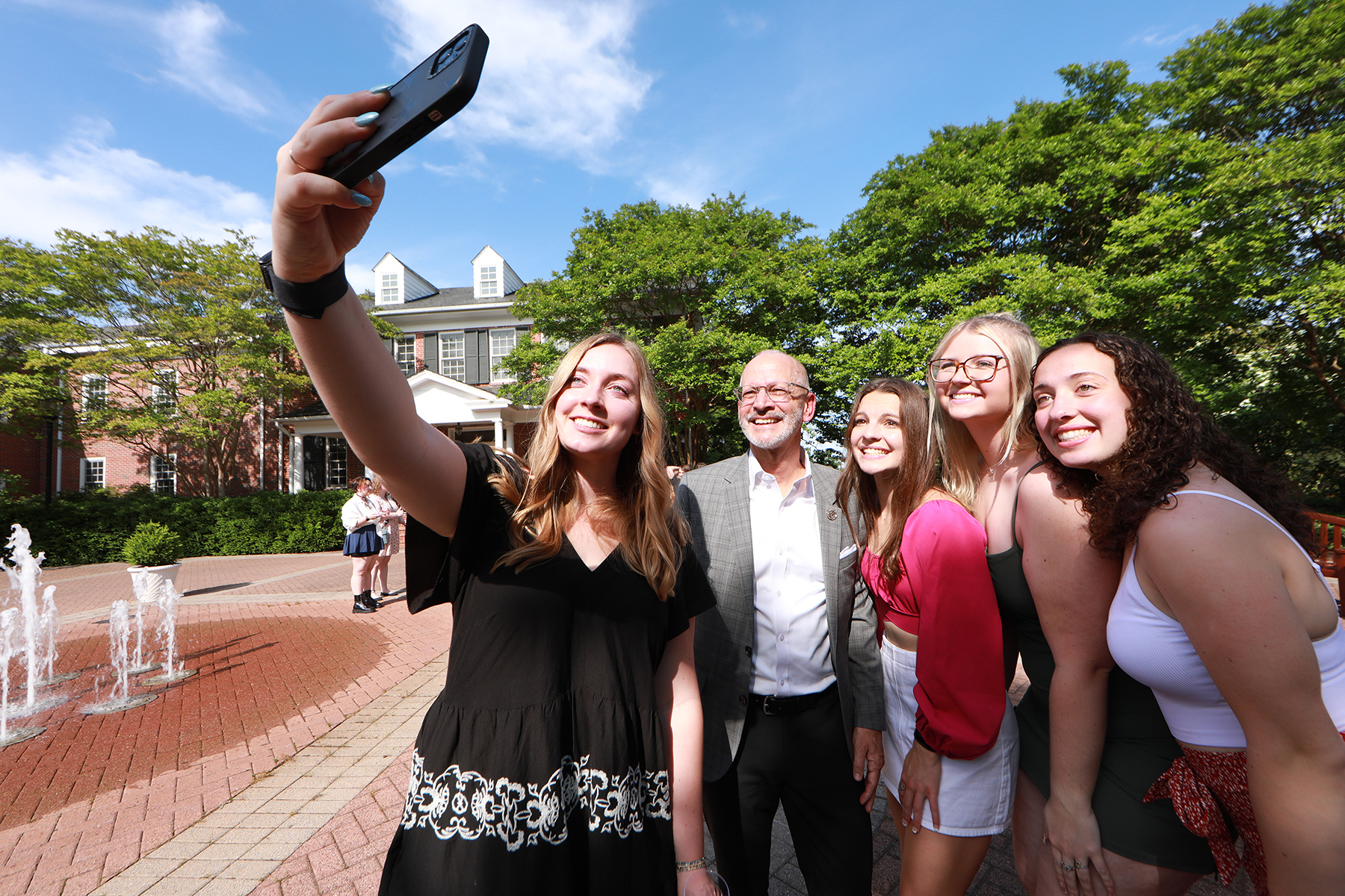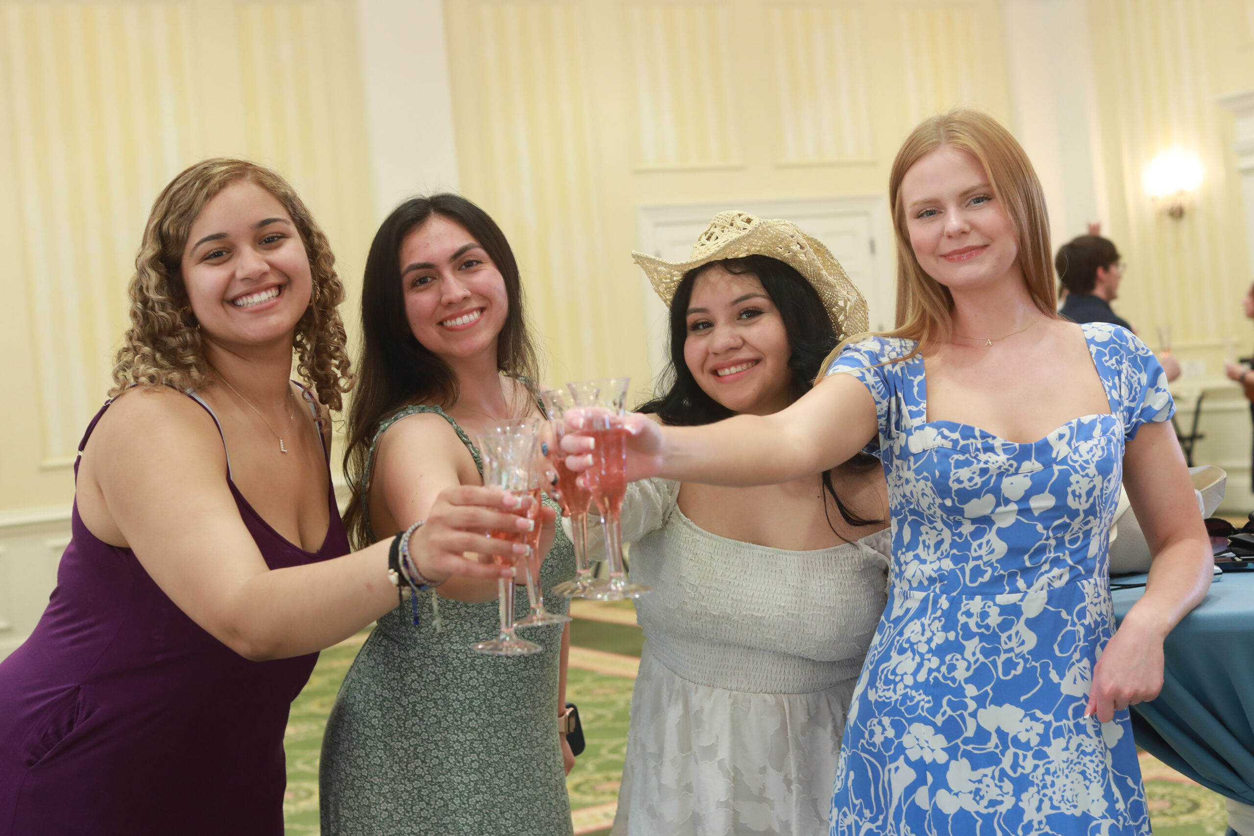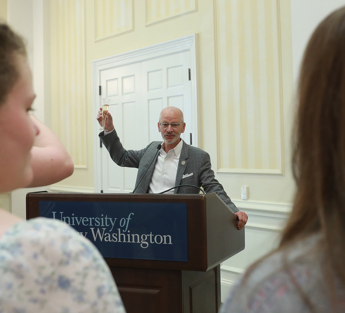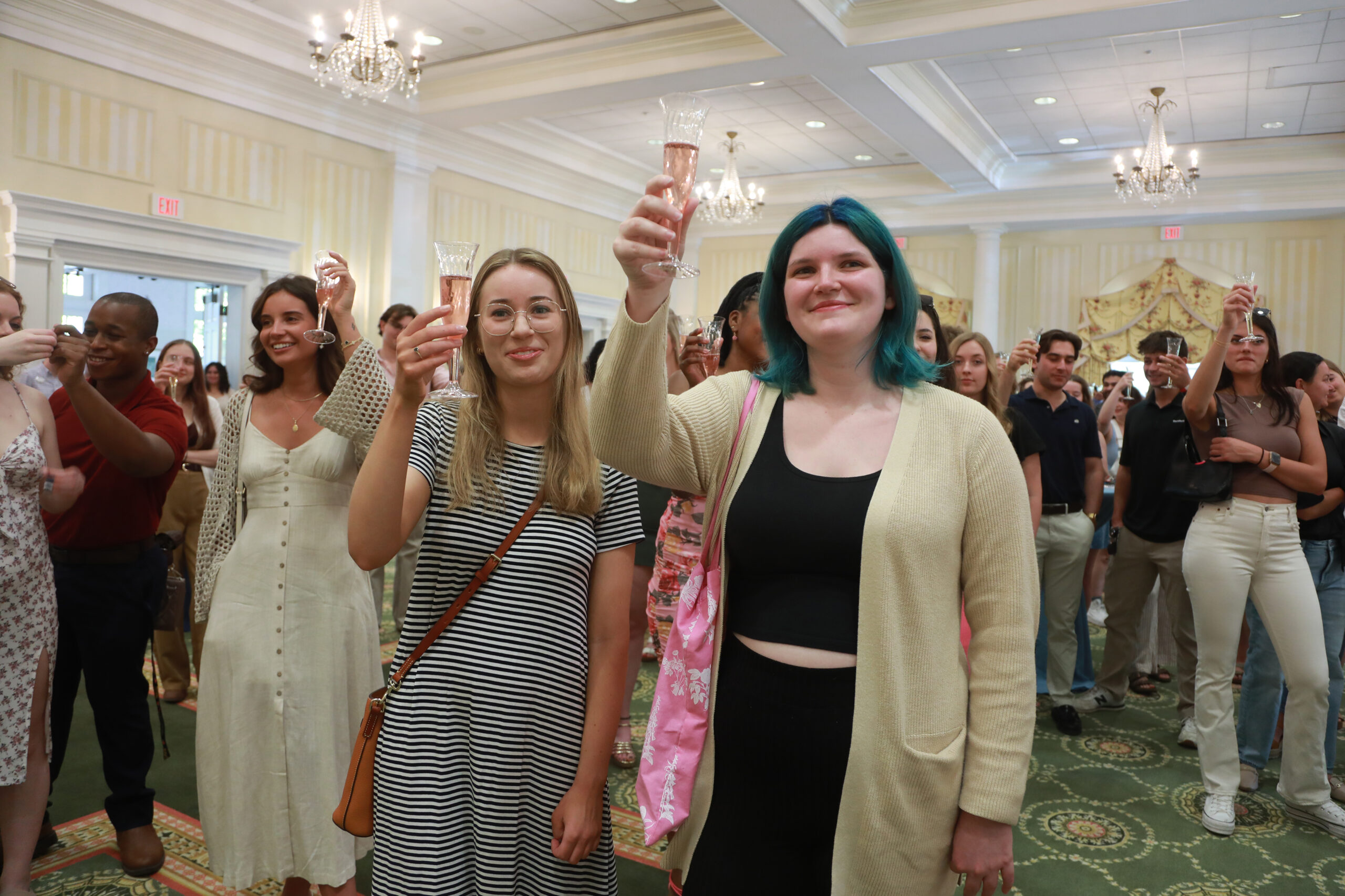 So, Arden didn’t want to miss out on making more memories with her classmates during UMW’s Commencement weekend. Festivities kicked off with the Senior Toast, a longstanding tradition that was revived two years ago, welcoming 2024 graduates into the Mary Washington alumni family. Gathered in the Jepson Alumni Executive Center, the home of the Office of Advancement and Alumni Engagement, the graduates reveled in and reminisced about the past four years, while President Troy Paino raised a glass to the class that came together to create community and connections, even during COVID.