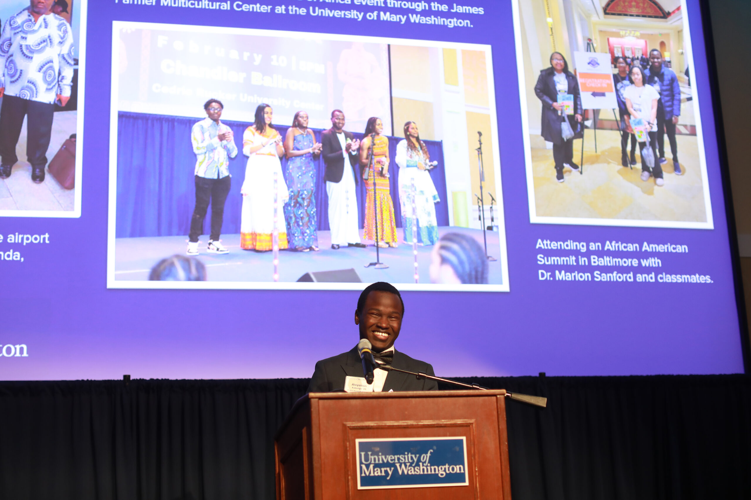 Aloysious shared those sentiments and other highlights of his journey from Africa to America at UMW’s Celebration of Giving in November. There, he expressed gratitude toward the donors who established the scholarships that have shaped his college experience and given him the chance to give back to the campus community.