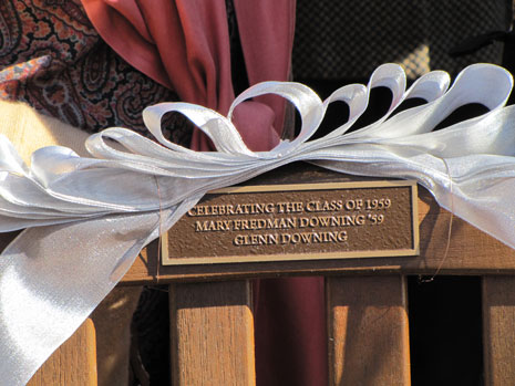 Mary Fredman Downing ’59 and Glenn Downing spoke during a bench dedication November 2, 2011, at the Jepson Alumni Executive Center. “I knew I wouldn’t be able to give a building or anything like that to Mary Washington unless, of course, I won the lottery,” Mary said. “So, Glenn and I thought this bench would be the perfect way to give back to the place we both love so much while also recognizing the Class of 1959.”