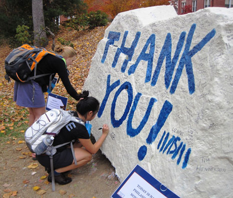 UMW students, faculty, and staff took time to sign the Spirit Rock Tuesday, November 15, in recognition of National Philanthropy Day. Sponsored by the UMW Student Philanthropy Council and the Office of Advancement, the event showcased the many ways in which private gifts enhance the Mary Washington experience.