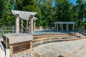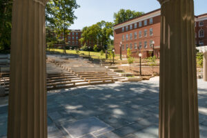 The major portion of the $3-million Amphitheatre restoration project is now complete. The final pieces of the pergolas are in place atop the 16 columns, the construction fencing is gone, and the Heslep Amphitheatre and Morris Stage now are open to students and members of the community.