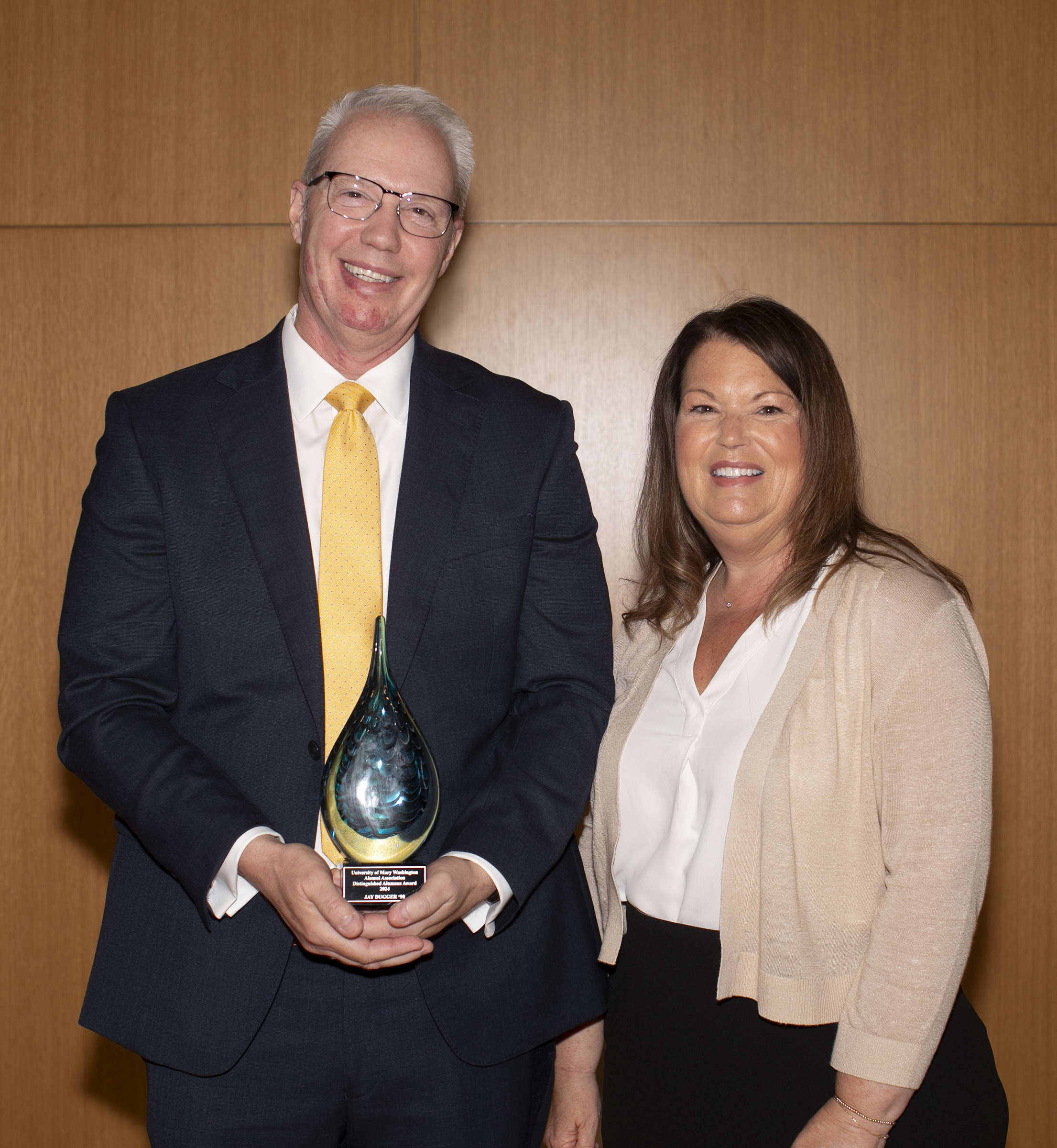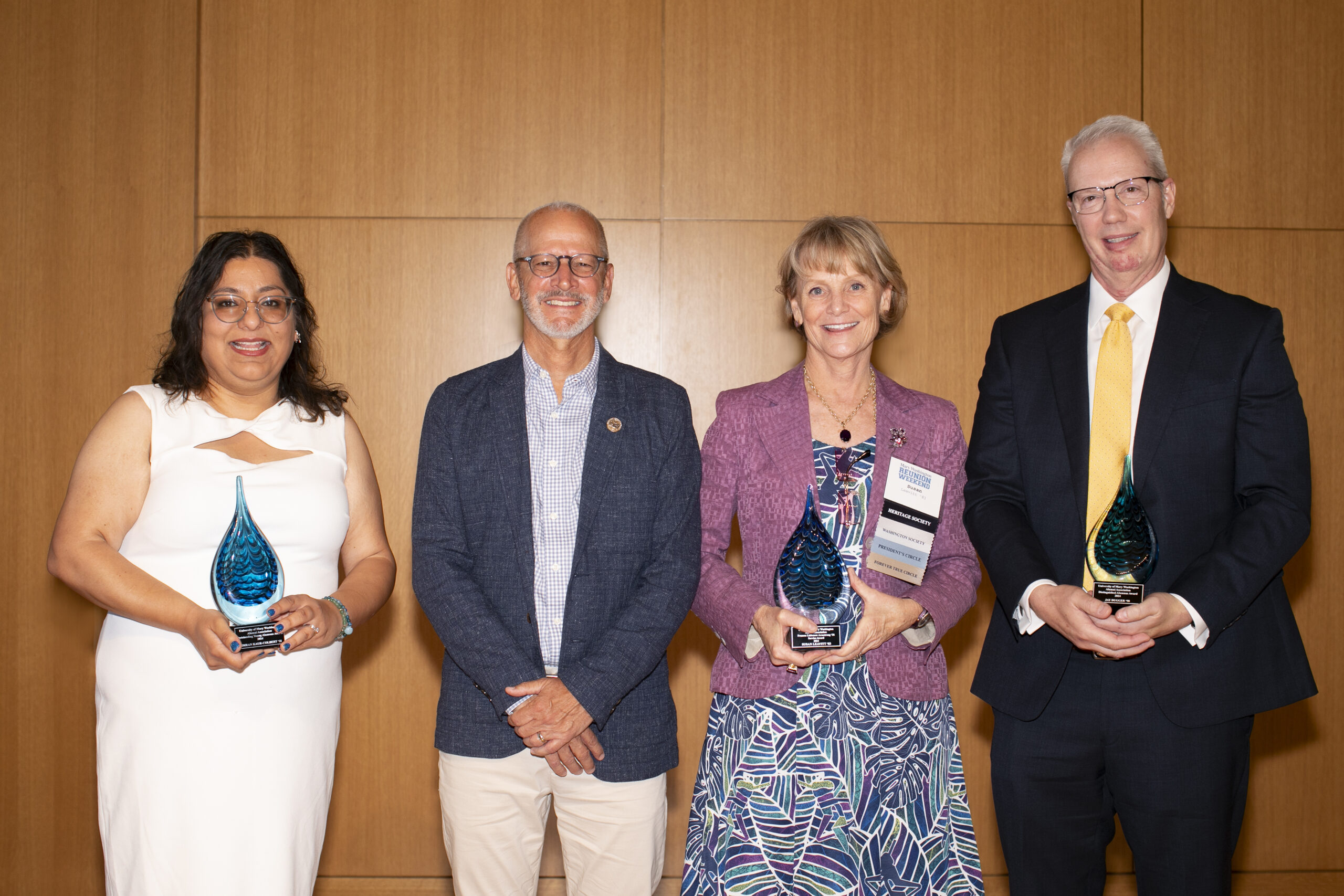 Nominated by Rich – who received the same award in 2020 – and Michael Michalowicz ’90, Jay was honored in a June 1 ceremony in Seacobeck Hall’s Weatherly Wing during Reunion Weekend. Alumni joined President Troy Paino in celebrating Jay, Susan Leavitt ’83, and Simran Kaur-Colbert ’11, as well as Dori Eglevsky, former rector of UMW’s Board of Visitors (BOV), who was named an honorary alumna. Alumni Awards Vice President Sean Lynch ’95 announced the honorees, who were selected by the Alumni Association Board of Directors (AABOD).