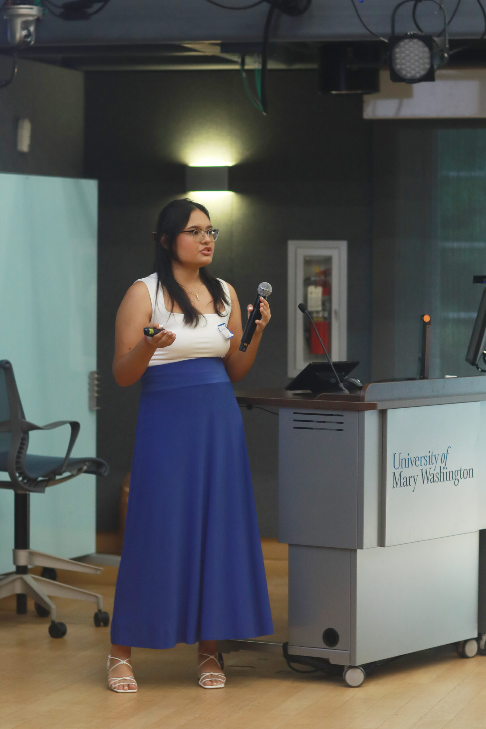 Kate was one of two students who took home the top prizes this year during UMW’s 25th annual Summer Science Institute (SSI), which engages undergraduate STEM students in a 10-week intensive research experience alongside their professors and peers. At a public symposium held July 24 in UMW’s Hurley Convergence Center, Green and her lab partner, biology major Morgan Hicok ’25, earned scholarship awards through the John C. and Jerri Barden Perkins ’61 College of Arts and Sciences Student Research Endowment. The funds will help them continue their research during the upcoming academic year.