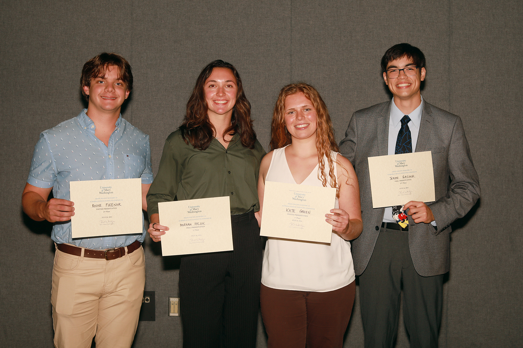 Professor Emeritus of Chemistry Ray Scott, who attended the symposium, secured the original grant from DuPont, which helped launch the program. Funding from generous donors, as well as the Naval Surface Warfare Center, Dahlgren Division, has helped this year’s SSI participants engage in extensive research on a broad range of topics across disciplines.