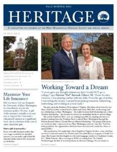 Giving to Mary Washington impacts students and donors. Click here to read the latest edition of the Heritage Newsletter.
